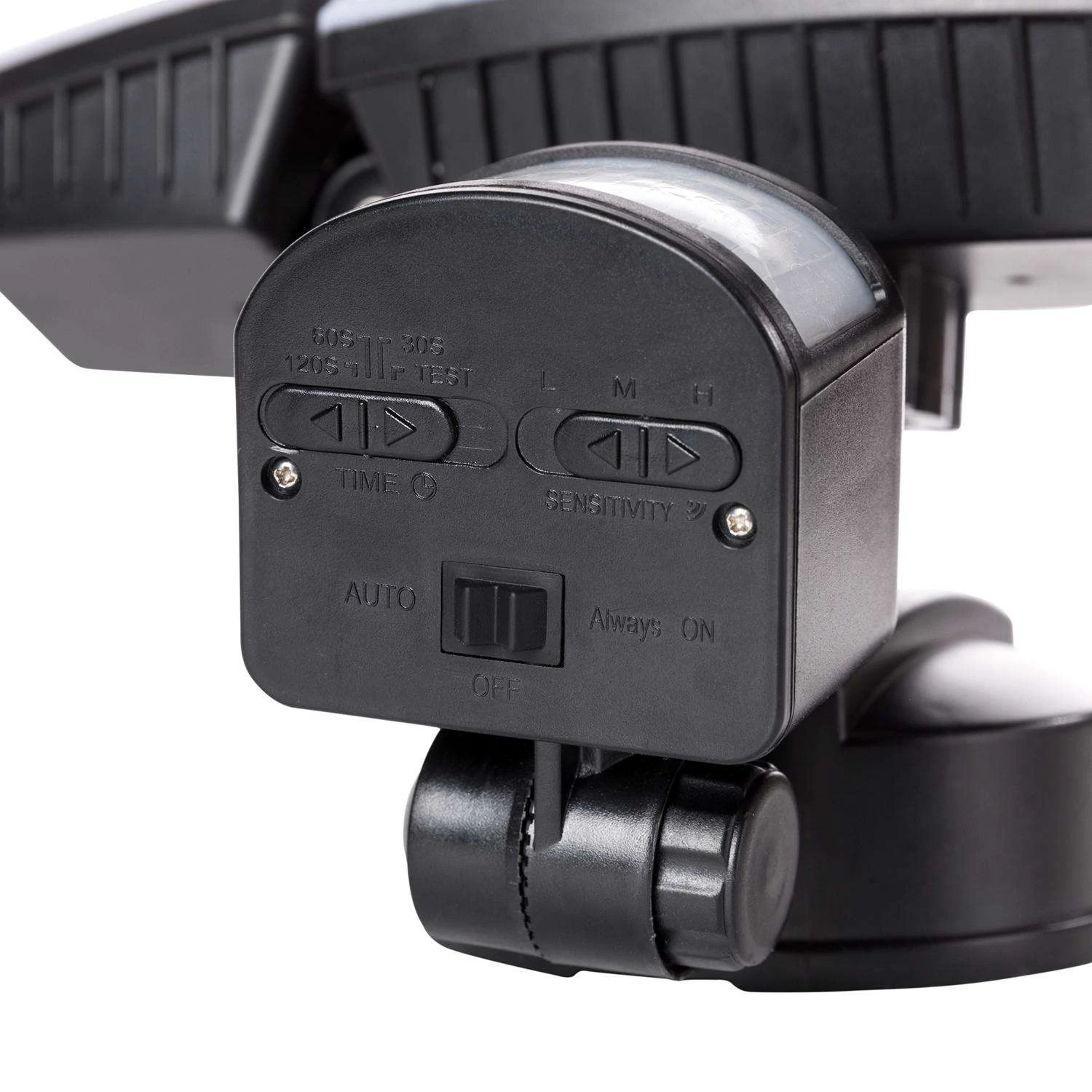 This SMD LED dusk to dawn outdoor security light has three flexible light heads, can light up exactly where you want. Featured with 188 super bright SMD LEDs will provide a clear and bright illumination experience. The solar panel keeps the rechargeable battery charged in the sunlight. During the night, it will stay lit when the motion was detected. It has 3 adjustable sensor time – 30s/60s/120s, as well as 3 adjustable sensor range – L /M/H, the maximum motion sensor range for “H” is up to 180° and 32ft. It is a perfect choice for outdoor use, can widely apply in any entryway, garden, yard, patio, garage or driveway for security. Solar powered, automatically charging in the sunlight “Auto/ off/ always on” switch, “auto” setting is strongly recommended Built-in (3) long lasting 1.2V AA 1800MAH Ni-MH rechargeable batteries With two mode mounting plates for options (flat and 90 degree) Weather resistant and waterproof, perfect for outdoor use, color temperature 6500K
