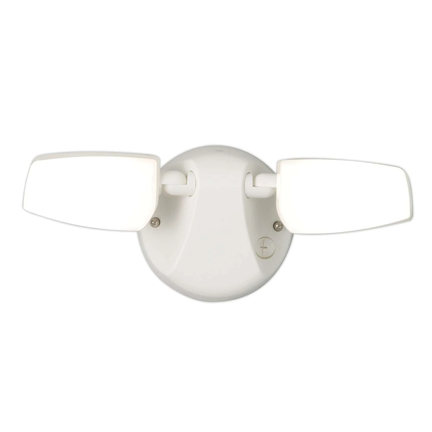 The LED twin head flood light is the ideal entry level floodlight to provide you with a low maintenance solution that is perfect for any security application. This small but effective flood light can be wall or eave mounted for maximum versatility. Selectable CCT (3000K, 4000K, 5000K) Frosted wrap around lens; low glare provides visual comfort Up to 108 Lm/W, 50K life hours at L70; save over 80% over traditional incandescent floodlights Patented motion swing arm; wall and eave mountability UV resistant plastic housing; no issues with rusting over time cULus listed for wet location Optional integrated photocontrol for nighttime on, daytime off Tool-less head and motion sensor