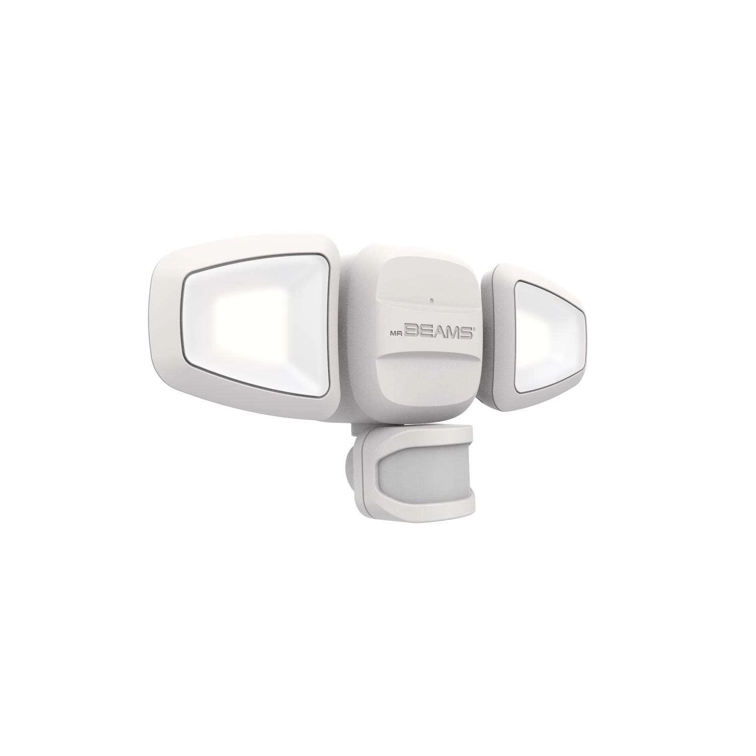 Mr. Beams high performance 750 lumens LED outdoor Security Light features two adjustable heads for completely customizable coverage. Get more light in more areas instantly. The outdoor motion spotlight installs in minutes without wires to provide automatic safety and security lighting anywhere around your home and yard. Adjustable, wide-angle motion sensor with 180 degrees field of detection and motion range up to 30 ft. away Pivoting light heads and sensor allow for installation almost anywhere including walls, trees, eaves and more Durable weatherproof design ideal for use outside, rain or shine Wireless, battery operation provides 9 month of light on a set of 4-D cell batteries
